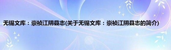 本文关于无锡文库:崇祯江阴县志的简介就讲解完毕,希望对大家有所帮助。