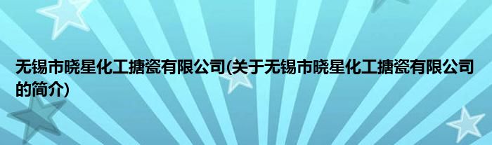 本文关于无锡市晓星化工搪瓷有限公司的简介就讲解完毕,希望对大家有所帮助。