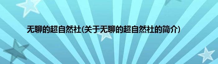 无聊的超自然社(关于无聊的超自然社的简介)
