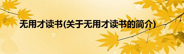本文关于无用才读书的简介就讲解完毕,希望对大家有所帮助。