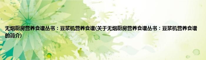 本文关于无烟厨房营养食谱丛书:豆浆机营养食谱的简介就讲解完毕,希望对大家有所帮助。