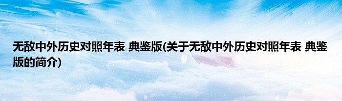 本文关于无敌中外历史对照年表 典鉴版的简介就讲解完毕,希望对大家有所帮助。