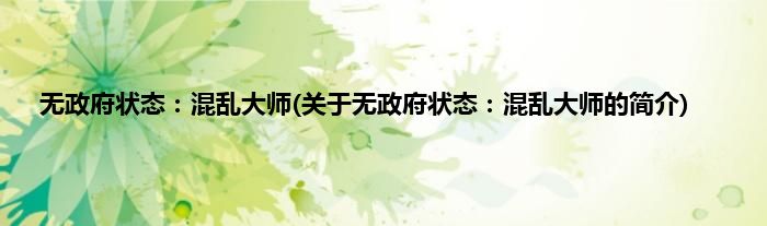 本文关于无政府状态:混乱大师的简介就讲解完毕,希望对大家有所帮助。