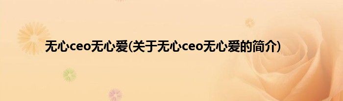 本文关于无心ceo无心爱的简介就讲解完毕,希望对大家有所帮助。