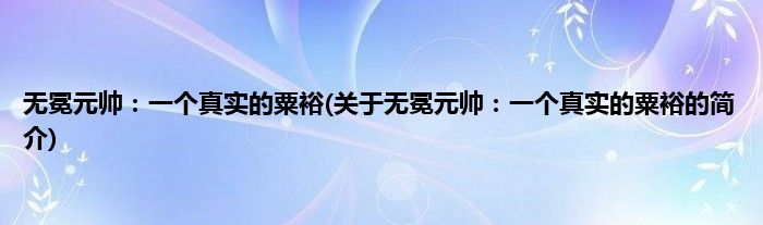 大家好,无冕元帅:一个真实的粟裕,关于无冕元帅:一个真实的粟裕的简介很多人还不知道,现在让我们一起来看看吧!