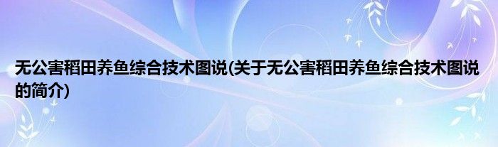 无公害稻田养鱼综合技术图说(关于无公害稻田养鱼综合技术图说的简介)