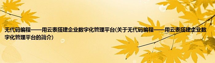 本文关于无代码编程——用云表搭建企业数字化管理平台的简介就讲解完毕,希望对大家有所帮助。
