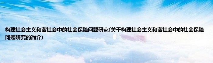 大家好,构建社会主义和谐社会中的社会保障问题研究,关于构建社会主义和谐社会中的社会保障问题研究的简介很多人还不知道,现在让我们一起来看看吧!