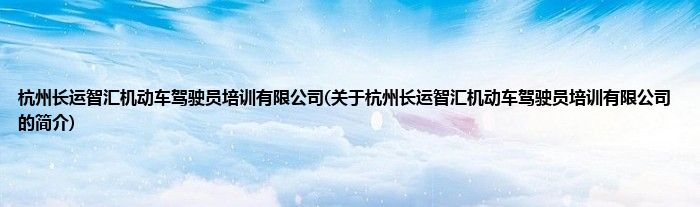 杭州长运智汇机动车驾驶员培训有限公司(关于杭州长运智汇机动车驾驶员培训有限公司的简介)