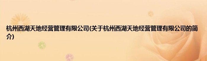 本文关于杭州西湖天地经营管理有限公司的简介就讲解完毕,希望对大家有所帮助。