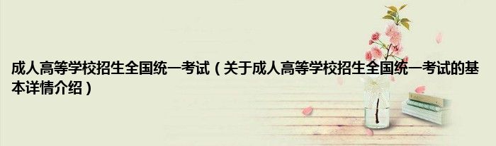 本文关于成人高等学校招生全国统一考试的基本详情介绍就讲解完毕,希望对大家有所帮助。