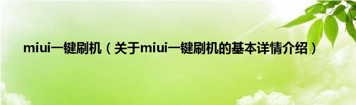 本文关于miui一键刷机的基本详情介绍就讲解完毕,希望对大家有所帮助。