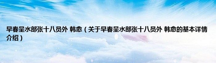 本文关于早春呈水部张十八员外 韩愈的基本详情介绍就讲解完毕,希望对大家有所帮助。