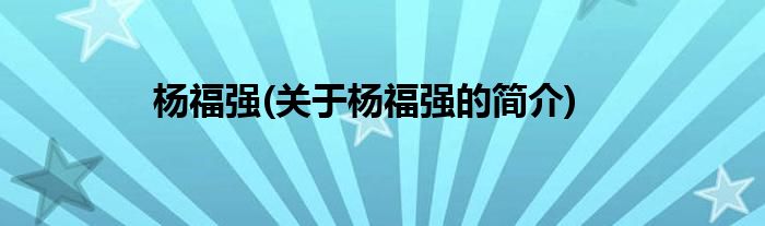 本文关于杨福强的简介就讲解完毕,希望对大家有所帮助。