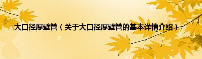 本文关于大口径厚壁管的基本详情介绍就讲解完毕,希望对大家有所帮助。