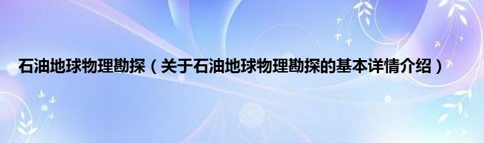 本文关于石油地球物理勘探的基本详情介绍就讲解完毕,希望对大家有所帮助。