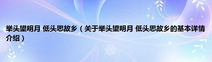 本文关于举头望明月 低头思故乡的基本详情介绍就讲解完毕,希望对大家有所帮助。