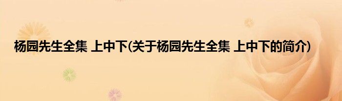 本文关于杨园先生全集 上中下的简介就讲解完毕,希望对大家有所帮助。