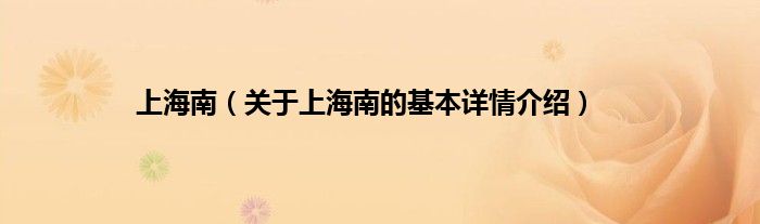 本文关于上海南的基本详情介绍就讲解完毕,希望对大家有所帮助。