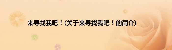 来寻找我吧!(关于来寻找我吧!的简介)
