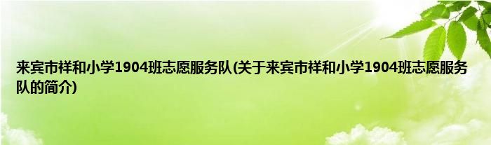 来宾市祥和小学1904班志愿服务队(关于来宾市祥和小学1904班志愿服务队的简介)