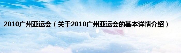 本文关于2010广州亚运会的基本详情介绍就讲解完毕,希望对大家有所帮助。