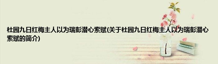 大家好,杜园九日红梅主人以为瑞彭潜心索赋,关于杜园九日红梅主人以为瑞彭潜心索赋的简介很多人还不知道,现在让我们一起来看看吧!