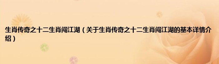 生肖传奇之十二生肖闯江湖(关于生肖传奇之十二生肖闯江湖的基本详情介绍)