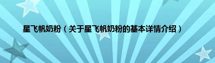 本文关于星飞帆奶粉的基本详情介绍就讲解完毕,希望对大家有所帮助。
