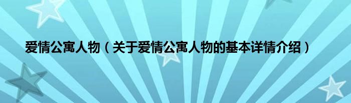 本文关于爱情公寓人物的基本详情介绍就讲解完毕,希望对大家有所帮助。