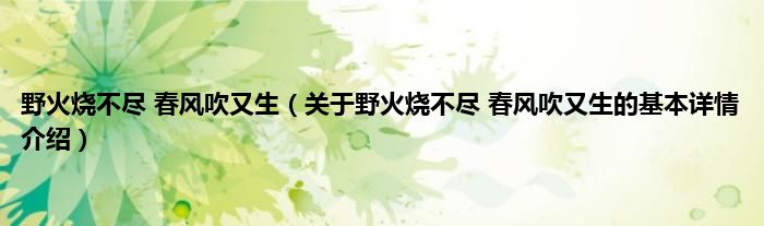 野火烧不尽 春风吹又生(关于野火烧不尽 春风吹又生的基本详情介绍)