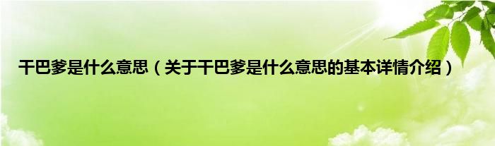 本文关于干巴爹是什么意思的基本详情介绍就讲解完毕,希望对大家有所帮助。