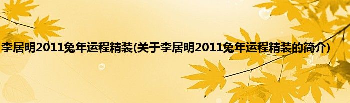本文关于李居明2011兔年运程精装的简介就讲解完毕,希望对大家有所帮助。