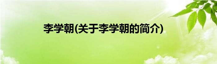 本文关于李学朝的简介就讲解完毕,希望对大家有所帮助。