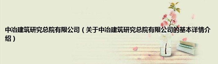 本文关于中冶建筑研究总院有限公司的基本详情介绍就讲解完毕,希望对大家有所帮助。