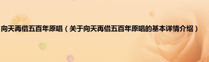 本文关于向天再借五百年原唱的基本详情介绍就讲解完毕,希望对大家有所帮助。