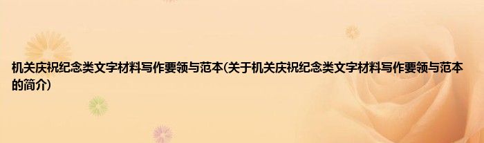 大家好,机关庆祝纪念类文字材料写作要领与范本,关于机关庆祝纪念类文字材料写作要领与范本的简介很多人还不知道,现在让我们一起来看看吧!