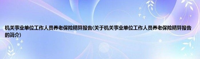 大家好,机关事业单位工作人员养老保险精算报告,关于机关事业单位工作人员养老保险精算报告的简介很多人还不知道,现在让我们一起来看看吧!