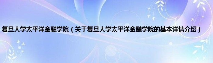 本文关于复旦大学太平洋金融学院的基本详情介绍就讲解完毕,希望对大家有所帮助。