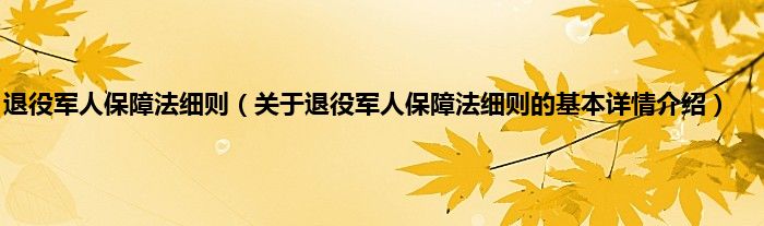 本文关于退役军人保障法细则的基本详情介绍就讲解完毕,希望对大家有所帮助。
