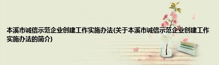大家好,本溪市诚信示范企业创建工作实施办法,关于本溪市诚信示范企业创建工作实施办法的简介很多人还不知道,现在让我们一起来看看吧!