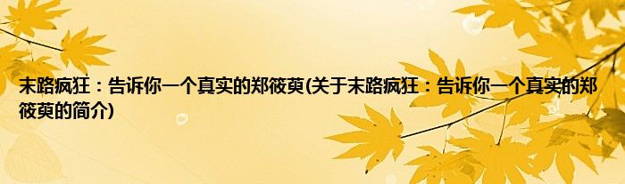大家好,末路疯狂:告诉你一个真实的郑筱萸,关于末路疯狂:告诉你一个真实的郑筱萸的简介很多人还不知道,现在让我们一起来看看吧!
