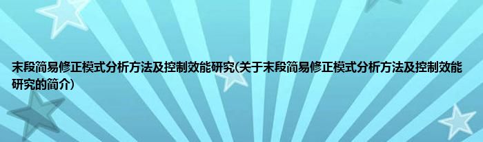 末段简易修正模式分析方法及控制效能研究(关于末段简易修正模式分析方法及控制效能研究的简介)