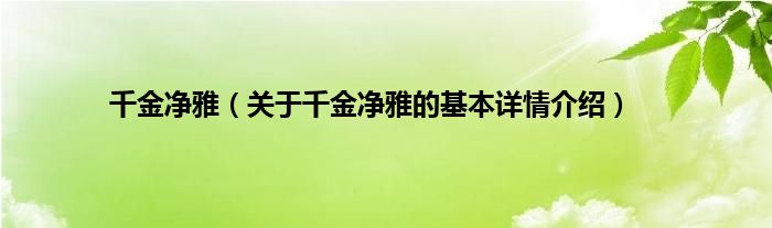 本文关于千金净雅的基本详情介绍就讲解完毕,希望对大家有所帮助。