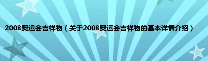 本文关于2008奥运会吉祥物的基本详情介绍就讲解完毕,希望对大家有所帮助。