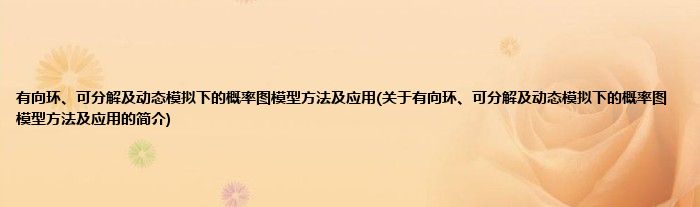 有向环、可分解及动态模拟下的概率图模型方法及应用(关于有向环、可分解及动态模拟下的概率图模型方法及应用的简介)