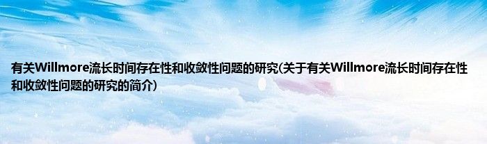 大家好,有关Willmore流长时间存在性和收敛性问题的研究,关于有关Willmore流长时间存在性和收敛性问题的研究的简介很多人还不知道,现在让我们一起来看看吧!