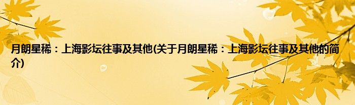 本文关于月朗星稀:上海影坛往事及其他的简介就讲解完毕,希望对大家有所帮助。