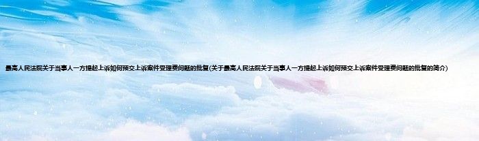 最高人民法院关于当事人一方提起上诉如何预交上诉案件受理费问题的批复(关于最高人民法院关于当事人一方提起上诉如何预交上诉案件受理费问题的批复的简介)