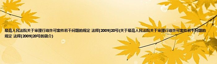 大家好,最高人民法院关于审理行政许可案件若干问题的规定 法释[2009]20号,关于最高人民法院关于审理行政许可案件若干问题的规定 法释[2009]20号的简介很多人还不知道,现在让我们一起来看看吧!